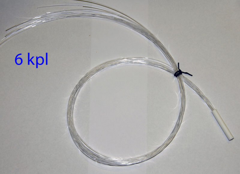 - Yhteen valoaukkoon sopii 30 kpl ø 0.75 mm kuitua tai 16 kpl ø 1.0 mm kuitua. Nippujen pituudet yleensä puolen metrin välein.